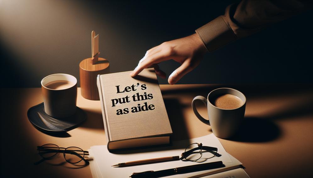 Фраза «בואו נשים את זה בצד» используется в разговорной речи, когда хотят временно прекратить обсуждение или решение какого-либо вопроса, чтобы вернуться к нему позже. Это выражение часто используется в ситуациях, когда необходимо сосредоточиться на более важных или срочных делах.